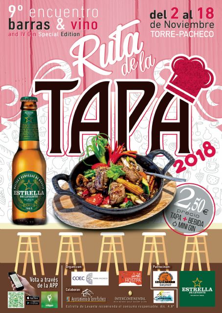Vecinos y visitantes podrán disfrutar de la ruta de la tapa en Torre Pacheco, organizada por COEC y HOSTPA con la colaboración del Ayuntamiento de Torre Pacheco, y el patrocinio de Estrella de Levante y SuperCash Solano, del 2 al 18 de noviembre. Además, cuenta con la colaboración del Intercontinental Mar Menor Golf Resort & Spa y Restaurante La Encarnación.
