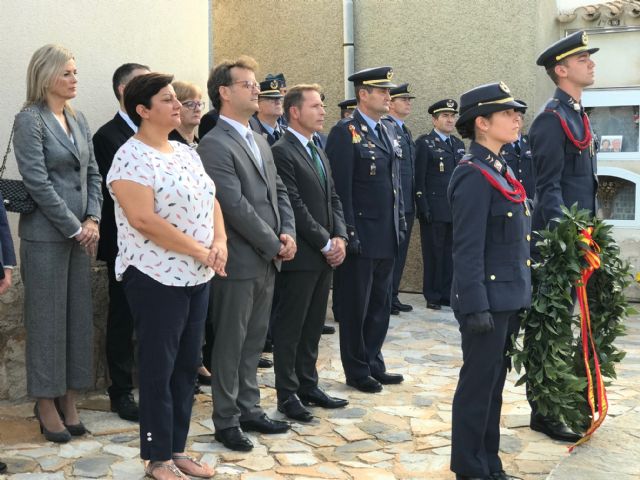 El alcalde de Torre Pacheco, Antonio León, acompañado por miembros de la Corporación Municipal, asiste en el cementerio de Torre Pacheco, al acto que como cada año, la Academia General del Aire dedica a la memoria de los militares fallecidos de la AGA en acto de servicio, con motivo del Día de los Caídos por la Patria.