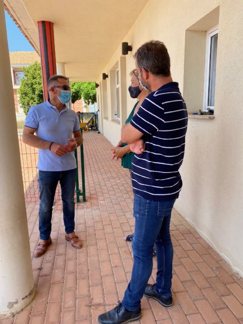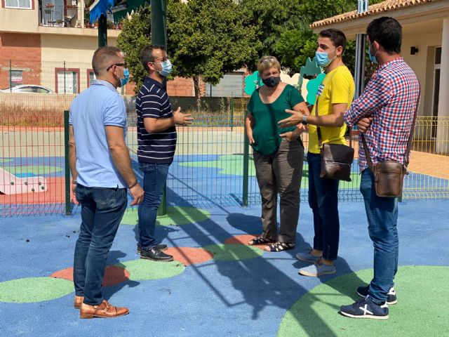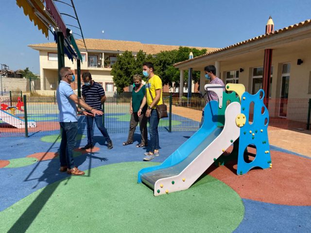 El Alcalde de Torre Pacheco, Antonio León, acompañado por miembros de la Corporación Municipal y la alcaldesa pedánea de Balsicas, Dolores Ros visitó el CAI de Balsicas para supervisar las obras de reparación realizadas en el parque infantil.