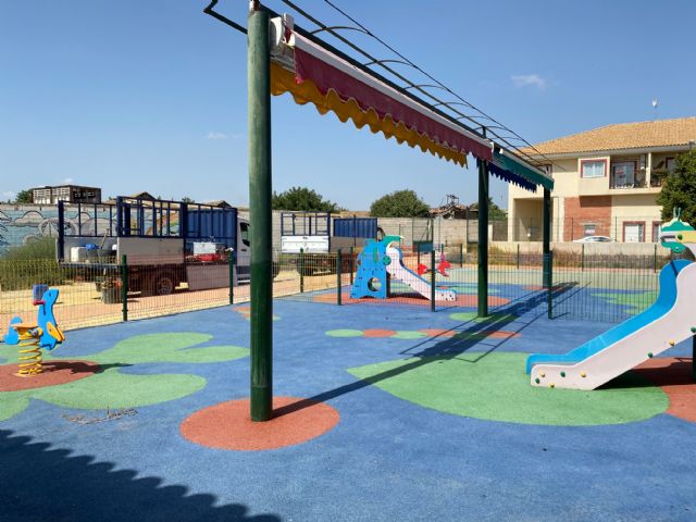El concejal de Educación, Paco Sáez, informó de las actuaciones realizadas en el parque infantil y que han contado con un presupuesto de 10.0345 euros. Se ha procedido al cambio de la valla que rodea el parque, también se ha realizado la instalación de un nuevo suelo, y sustitución del toldo, todo ello para mejorar la seguridad de los más pequeños, en una zona donde pasan gran parte de su tiempo.