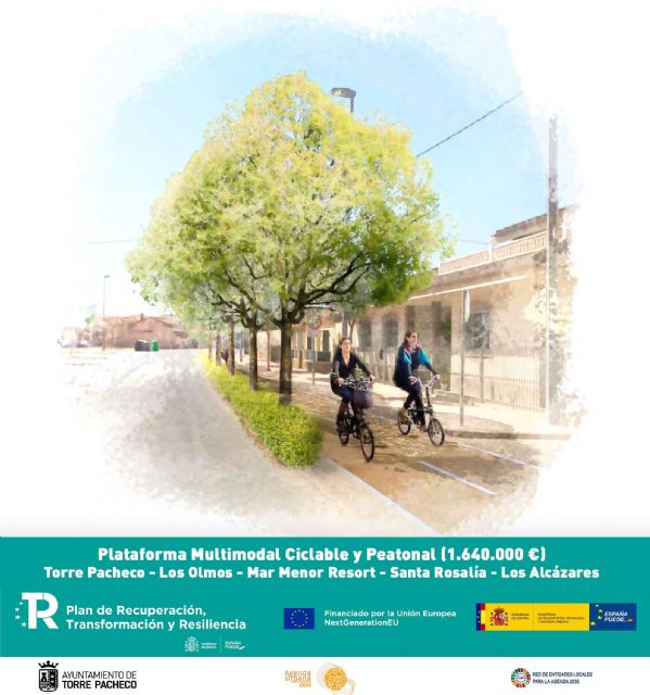 Las obras comenzarán a lo largo de este año, estando prevista su licitación antes del final del próximo mes de abril. El concejal de Hacienda y Proyectos Europeos, Carlos López, ha señalado que “desde la Oficina de Proyectos Europeos estamos trabajando intensamente por concurrir a todas las convocatorias del Plan de Recuperación, teniendo en cuenta la diversidad territorial y la cohesión social y urbana de nuestro municipio. Esta plataforma ciclable hacia Los Alcázares - Mar Menor cuenta con una alta demanda social, y permitirá a los vecinos contar con un nuevo equipamiento para realizar deporte, actividades saludables, y favorecer la transición hacia un modelo de movilidad más sostenible y respetuoso con el medio ambiente.”