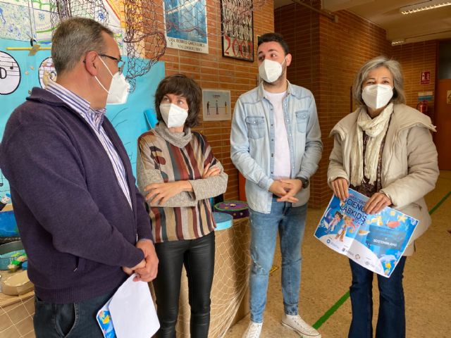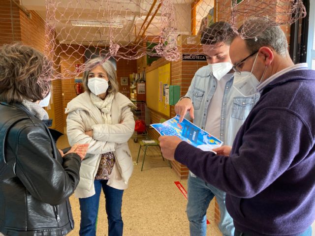 El director del centro, Vicente Silla, aprovecho para mostrar el trabajo realizado por los alumnos sobre el Mar Menor, y que se encuentra expuesto en el colegio.