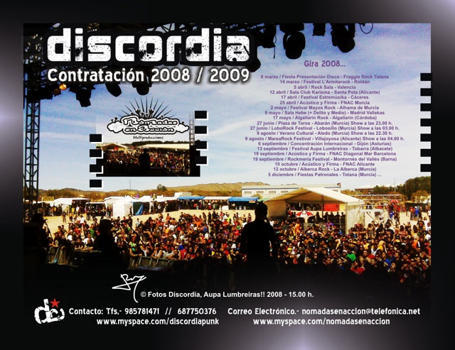 Desde Discordia quieren agradecer la labor de "Nómadas en Acción" que están haciendo un gran trabajo por el grupo, ya que sus componentes aparte tienen sus trabajos para poder sobrevivir como cualquier persona y que no viven de la música.