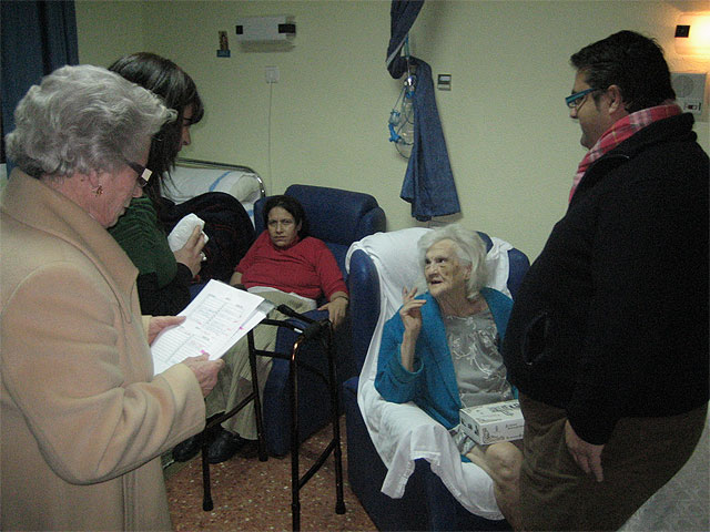 Durante el emotivo encuentro con sus paisanos del municipio ingresados en el centro médico lorquino y sus familiares, las autoridades contaron con la colaboración de las voluntarias de la Asociación Profesional Sanitaria "Salus Infirmorum" de Totana.