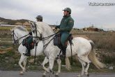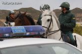 Una Unidad Ecuestre de la Guardia Civil, integrada por diez agentes y ocho caballos, realizan labores de vigilancia especial durante estas semanas en las explotaciones agrarias y ganaderas del campo de Totana coincidiendo con la campaña de recolecta de la uva de mesa en este municipio y con el fin de evitar robos en ls principales zonas de este cultivo.