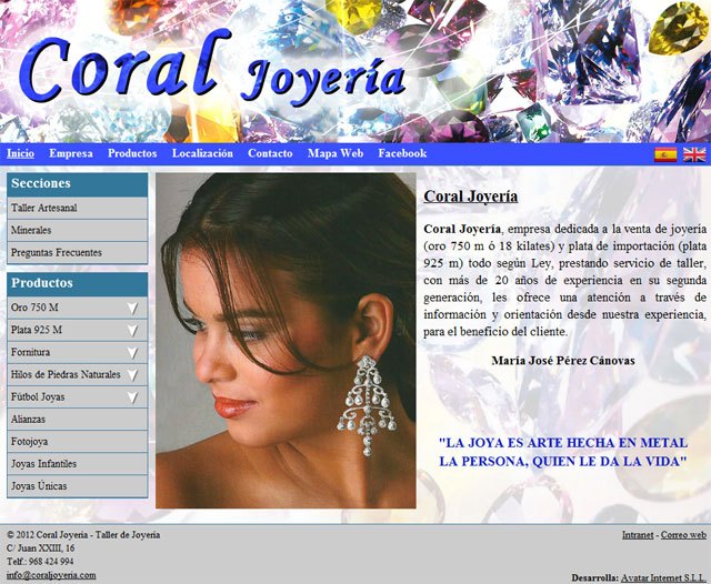 Además de la página web de Coral Joyería, los siguientes sitios web que incluyen tienda on-line, también han sido desarrolladas con Superweb: