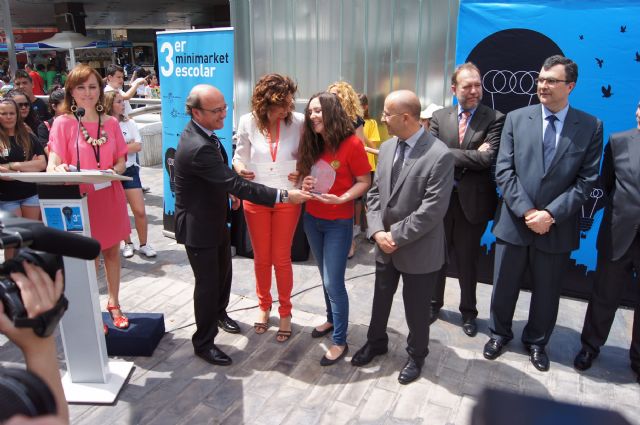El colegio concertado "Reina Sofía" ha ganado el premio a la Creatividad Empresarial en el III Mini Market de Empresas Escolares de la Región de Murcia que se ha celebrado esta mañana en la Avenida La Libertad en Murcia. Los escolares de Totana, que han participado en dos proyectos que fomentan la cultura emprendedora en edades tempranas, han sido galardonados por su iniciativa liderada por los alumnos de Secundaria con la venta comercial "Compra con Cabeza".