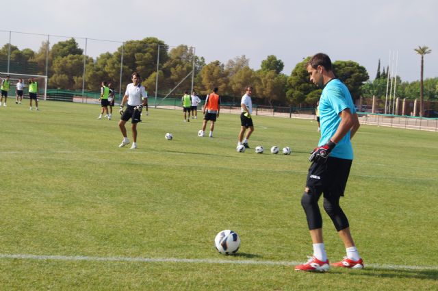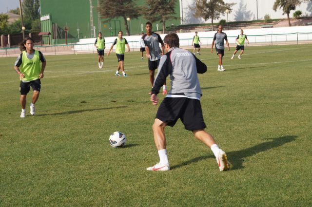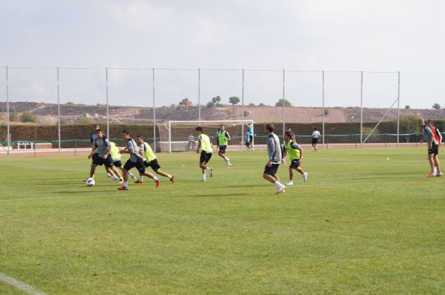 La plantilla del Real Murcia CF SAD se ha ejercitado hoy en el campo de fútbol de césped natural del Polideportivo Municipal "6 de Diciembre" de Totana, donde volverá a realizar sus sesiones de entrenamiento mañana, y de igual modo, el miércoles y jueves de la próxima semana con el fin de dar un poco de respiro a sus instalaciones en Cobatillas.