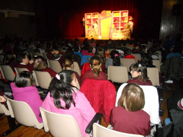 Los escolares de todos los centros de enseñanza del casco urbano de Totana disfrutaron hoy de las dos funciones programadas de la comedía musical "Violeta y Pantagruel", a cargo de la compañía alicantina "Jácara Teatro", bajo la dirección de Juan Luis Mira y que representó en el Centro Sociocultural "La Cárcel", programada de forma gratuita por la Concejalía de Cultura Popular.