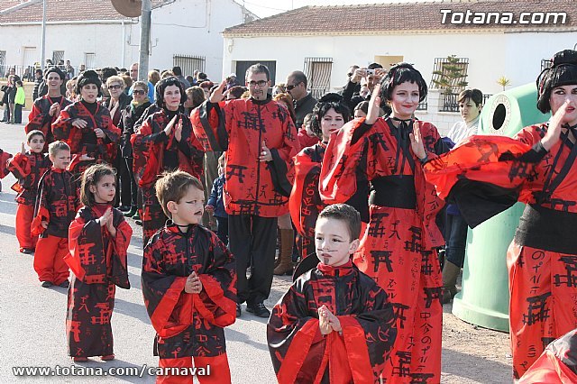 Decenas de alumnos del colegio "Guadalentín" de la pedanía totanera de El Paretón-Cantareros, acompañados por sus padres y los profesores del centro, fueron los protagonistas del divertido desfile de carnaval que ha recorrido hoy las principales calles de la diputación.
