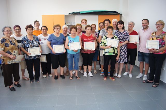 La alcaldesa de Totana, Isabel María Sánchez, y el concejal de Deportes, Bartolomé Pallarés, han clausurado el programa municipal de Gimnasia de Personas Mayores en El Paretón-Cantareros en el que han participado durante el curso 2012/13 una veintena de mujeres de esta pedanía y que han sido impartidas por la monitora de la Concejalía, Isabel Mula.