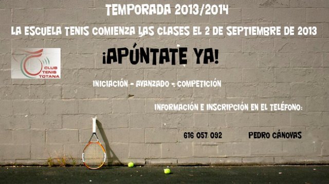Como novedad para este nuevo curso la Escuela del Club de Tenis impartirá sus clases además de en el Club de Tenis Totana, en las instalaciones de la Ciudad Deportiva y en el Polideportivo Municipal.