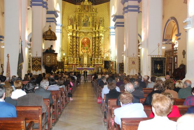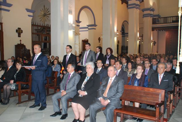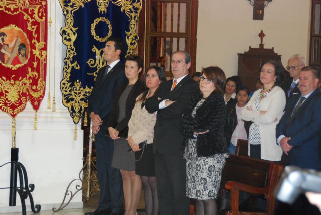 La alcaldesa de Totana, Isabel María Sánchez Ruiz, y otros miembros de la corporación municipal asisttieron ayer a la tradicional Misa de Hermandades y Cofradías y al Pregón de la Semana Santa de 2015 en este municipio.
