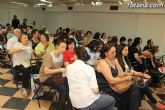 Acto seguido intervino Gloria Alarcón García, que es Profesora de Economía Aplicada en la Universidad de Murcia, investigadora y ponente de varias publicaciones en materia económica e igualdad. Gloria Alarcón es la autora del Plan F, que ha elaborado a propuesta del candidato a la Presidencia de la Comunidad Autónoma, Rafael González Tovar. Dijo que el Plan F es un instrumento para avanzar hacia la igualdad y convertirla en un motor de la economía. Comento que de sus investigaciones y las de otros equipos se deduce que la mujer está muy preparada para incorporarse al mercado laboral, que en la universidad son las mujeres quienes mejores notas tienen y que la mayoría de los premios académicos son para la mujer, pero que sin embargo los cargos de máxima responsabilidad son para los hombres. Dijo que la sociedad está desaprovechando el conocimiento, la preparación y la capacidad de la mujer para incentivar y recuperar la economía.