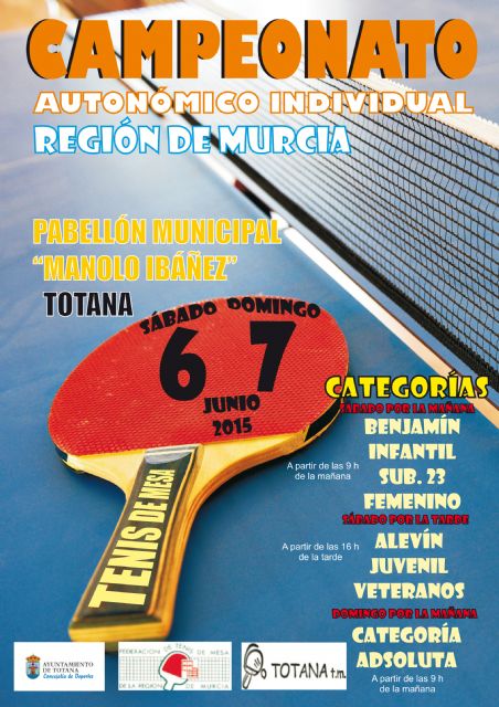 Del club Totana participarán 16 jugadores de los en torno a 160 que se espera participen entre todas las categorías. El plazo de inscripción puesto por la Federación de Tenis de Mesa de la Región de Murcia finaliza el Lunes y el Miércoles se realizará el sorteo.