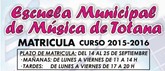 18/08/2015 El plazo de matrícula de la Escuela de Música de Totana para el curso 2015/2016 será del 14 al 25 de septiembre, ambos inclusive