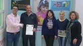 El presidente de D´Genes, Juan Carrión, acompañado por otros miembros de la directiva de la asociación quiso agradecer esta iniciativa y trasladó al presidente de la Hermandad de Santa María Magdalena que hiciese extensiva su gratitud al resto de hermanos de esta cofradía por su generosidad al apoyar con este tipo de iniciativas el mantenimiento de la cartera de servicios que se prestan en el Centro "Celia Carrión Pérez de Tudela", un centro de referencia en la atención multidisciplinar a personas con enfermedades raras y sus familias en la Región de Murcia.