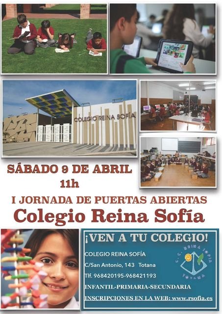 La jornada de puertas abiertas se desarrollará el próximo sábado 9 de abril a partir de las 11:00 horas. En dicha jornada, pensada especialmente para los padres y madres con niños de nueva escolarización en 3 años, el centro pretende mostrar de primera mano la metodología de trabajo, así como los servicios e instalaciones que ofrece, incluyendo una cuidada y personalizada atención al alumnado en todas sus dimensiones con el fin de propiciar un desarrollo integral de nuestros estudiantes tanto en la faceta escolar como en la personal, lo cual se ve avalado por los buenos resultados obtenidos por nuestros alumnos en los últimos años en las pruebas de diagnóstico realizadas por la Consejería de Educación de la Región de Murcia.