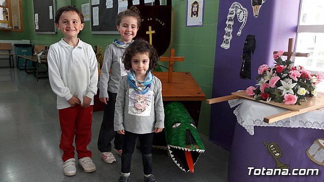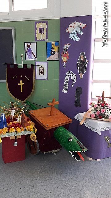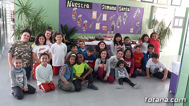 Desde el área de religión, y con el trabajo realizado por los alumnos, se ha montado una pequeña exposición en la que se muestran a través de dibujos y collages, los símbolos y elementos característicos de la Semana Santa totanera: (nazarenos, manolas, “armaos” y los instrumentos musicales propios de las bandas de música y orquesta).