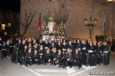 Y finalmente y como novedad principal para este año, en la noche del viernes Santo, todos los componentes de la banda van a desfilar con la túnica negra totanera, y con el fajín de la hermandad, en azul-blanco, justo igual que ondea en la plaza del Ayuntamiento desde hace unos días junto con las del resto de hermandades que posesionamos en las procesiones de Totana.