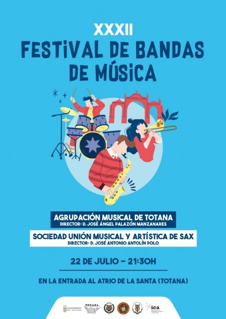 El XXXII Festival de Bandas de Música se celebra el próximo día 22 de julio, a partir de las 21:30 horas, por vez primera en la entrada al atrio de La Santa, organizado por la Agrupación Musical de Totana, dentro del programa de actividades culturales de las fiestas patronales de Santiago.