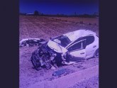25/05/2025 Dos heridos en un accidente de tráfico en Lebor Bajo, Totana, tras colisionar un vehículo con una farola
