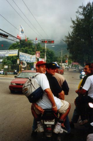 Y nos vamos de Puerto Plata ciudad, a un pueblecito de las afueras. Como siempre el que conducía y dos de nosotros en cada moto.