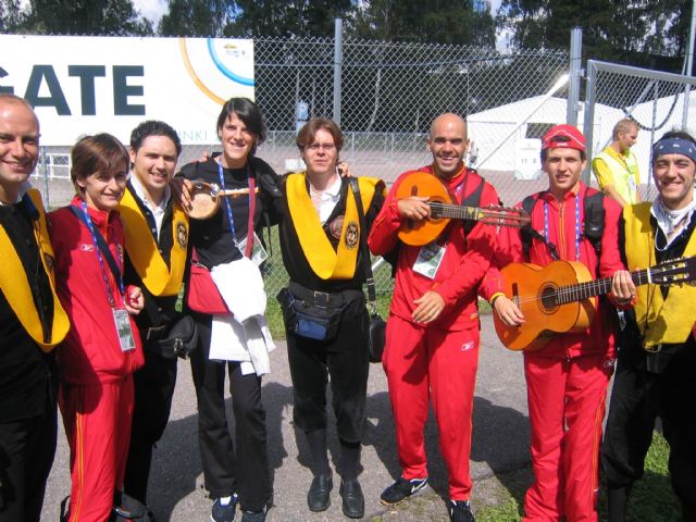 | Y casualidades de la vida, pasaban por ahí, algunos atletas del equipo español, Marta Mendía y Reyes Estévez, entre otros y nos hicimos una fotos con ellos, además de cantarles una canción, la cual bailaron...