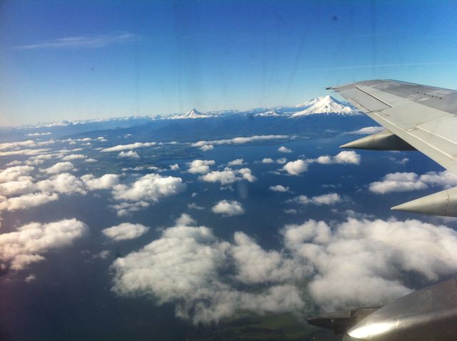 Ya se ven los volcanes nevados que rodean Puerto Montt. ¡Preciosos!