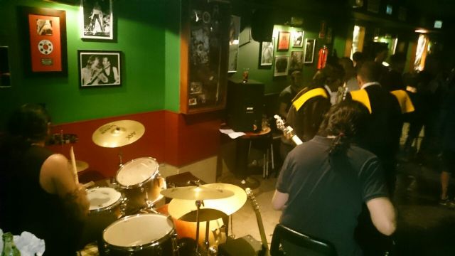 Cantando Maneras de Vivir y otros temas, junto a un grupo de rock en un pub de Daimiel. Tuna rockera, jeje.