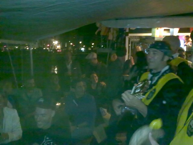 Incluso los dueños de los restaurantes salian a llamarnos para que cantaramos en sus locales. En esta foto en un Restaurante-barco.