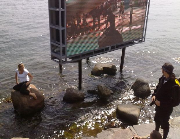 Pues chasco, la sirenita estaba en la Expo de Shangai (China), y nos tuvimos que conformar con verla en una pantalla gigante y en carne y hueso, jeje.