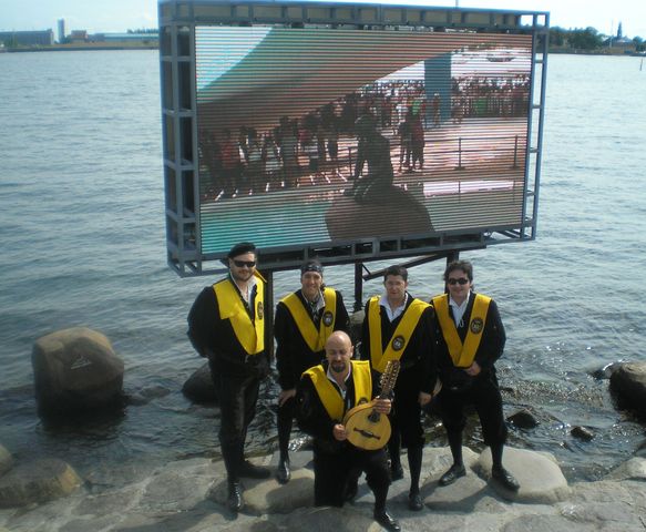 Pues nada, ya que estamos aquí, nos echamos la foto, con la pantalla gigante y la roca donde tendría que estar la estatua.