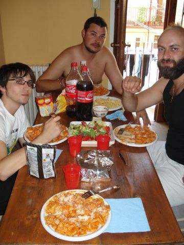 “Arriviamo a la Roma!” Allí, lo primero es lo primero, y Don Trifón cocina pasta a su estilo.
