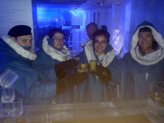 Brindando en el IceBar. Los vasos evidentemente son de hielo, jeje.