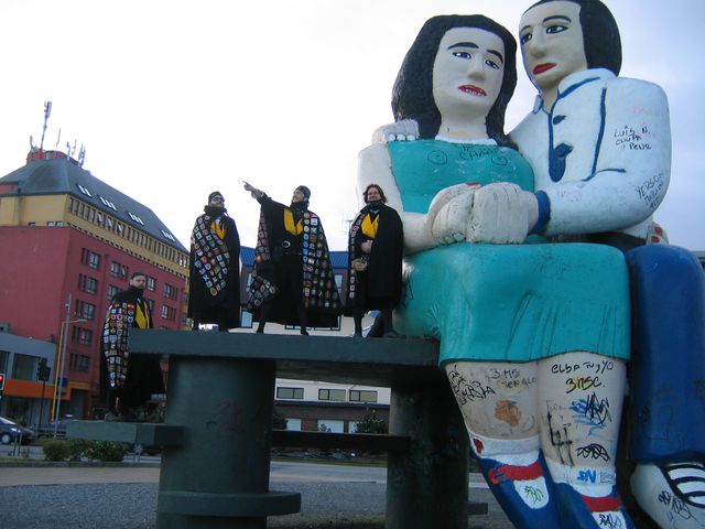 Escultura de los amantes de Puerto Montt. !Senalando al revés que Colón!, jeje...