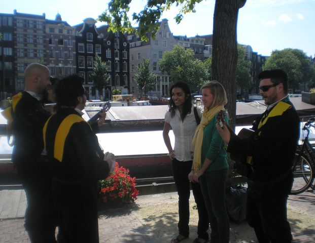Cantando una canción a unos amigas que conocimos. Una era de India y otra de California (EE.UU.)