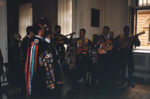 Nos pusimos nuestras mejores galas, capa y con todos los instrumentos a cantar en la embajada española antes los embajadores de 10 o 12 países.