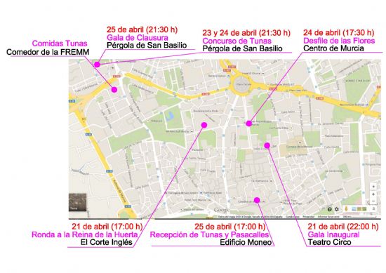 un plano donde se sitúa los actos programados del XXVII Certamen Internacional