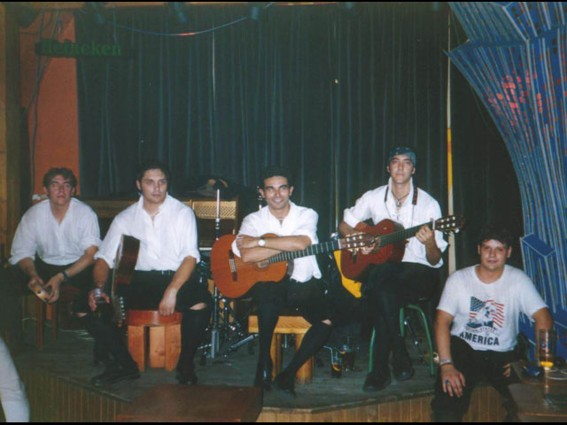 Descanso de la actuación en un bar de Cracovia donde nos refugiamos de la lluvia y del rayo que cayo a 20 metros de nosotros