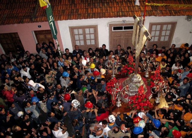 Y es también la cruz –las cruces porque son más de 300 las que se exhiben en el municipio– otra de las rivalidades que afectan a todo el pueblo, a todas sus calles. Capillas, portales, ventanas, escaparates, interiores de viviendas, patios, incluso simples paredes se adornan con cruces y fuera de la urbe, también en riscos, peñas en el mar, caminos y quebradas en el monte. Cientos de cruces y millones de flores formando enrames deslumbrantes o modestos que forman un catálogo de las más bellas y olorosas variedades. Orquídeas, anturios, rosas gigantes, tulipanes, claveles, margaritas, calas y, naturalmente, la Strelitzia reginae, más conocida como ave del paraíso, la más típica de Canarias.