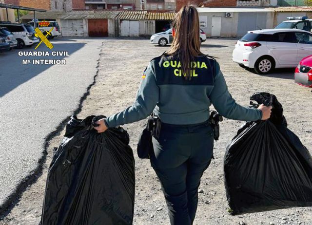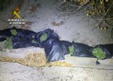 La actuación se inició de madrugada, cuando una patrulla de Prevención de Seguridad Ciudadana, que patrullaba por el municipio de Villanueva del Río Segura, se percató de la existencia de unos sacos de basura repletos de marihuana en una zona poco iluminada.
