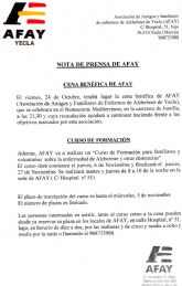 20/10/2008 La Asociación de Amigos y familiares de enfermos de Alzheimer de Yecla (AFAY) organiza una cena benéfica