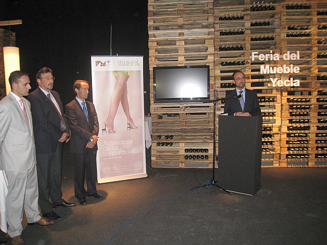 Junto con el consejero y el alcalde de Yecla, estuvieron el director del Info, Juan José Beltrán, y los máximos representantes de instituciones del sector del mueble, como de la Asociación de Empresarios del Mueble y la Madera de la Región de Murcia (Arema) y la Feria de Yecla.