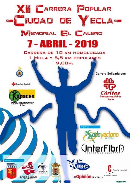En unas semanas, Yecla volverá a acoger el circuito de carreras populares Región de Murcia Running Challenge. Así será el domingo 7 de abril, en el marco de la XII Carrera Popular "Ciudad de Yecla" Memorial Pedro Muñoz "EL CALERO". A las 9:00h. dará comienzo la distancia corta absoluta, arrancando a las 10:00h. los 10km., con ese circuito homologado por la RFEA en dicha distancia, que será además la 13ª cita puntuable de la RCH 2018/19. Tras la finalización de las pruebas absolutas tendrá lugar la milla solidaria, así como las pruebas para menores, todo ello con salida y meta en las inmediaciones del Parque de la Constitución.