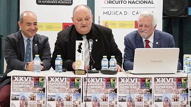 Vicente Cerdá, presidente de la CESM, asegura que “queremos ayudar a mejorar las competencias y empleabilidad de los profesionales y cuadros del movimiento asociativo. Cerdá indica que “la Confederación potenciará todas las propuestas que supongan una mejora del proyecto social, educativo y cultural, que desarrollan las sociedades musicales”. Asimismo, ha dado las gracias a la Asociación de Amigos de la Música de Yecla y al Ayuntamiento de Yecla “por su apoyo e inestimable colaboración en la organización de la asamblea”, y a la Federación de Bandas de Música de la Región de Murcia por ser la anfitriona.