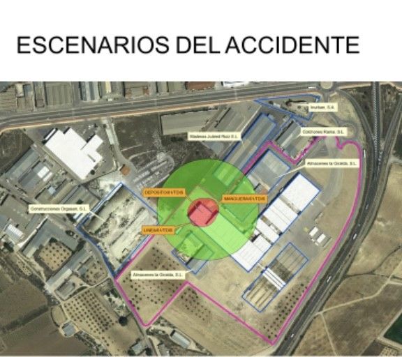 En el simulacro se ha comprobado la efectividad de las medidas preventivas de la empresa ante un accidente por derrame de Diisocianato de Tolueno (TDI) que es la sustancia más peligrosa de la que dispone la empresa y que se utiliza como espesante para la fabricación de la goma espuma de los colchones. Esta sustancia puede producir un accidente de dispersión tóxica y que es peligrosa en su inhalación.