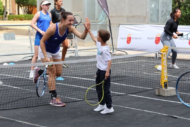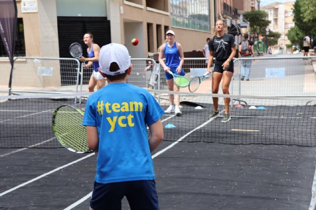 En esta demostración lúdica de tenis "en la calle" ha sido llevada a cabo por profesores y jugadores de la escuela del Yecla Club de Tenis, así como la presencia de algunas de las jugadoras que competirán en el torneo, como las belgas Alexandra Biot y Jana Otzipka, la britanica Scarlet Kavanagh, la estadounidense Mia Horvit y Elena Milovanovic de Serbia.